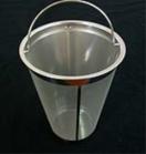 提篮式过滤筒的信息:304不锈钢材质,高度是180毫米,上口外径是110毫米,底部直径是49毫米。提手用直径是3毫米的不锈钢丝制成。